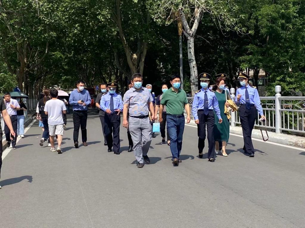 5月18日上午,市卫健委刘俊敏副主任一行六人对我校燕山校区卫生防疫工作进行检查,总务处、学生处、教务处、图书馆相关负责人参加迎检工作。