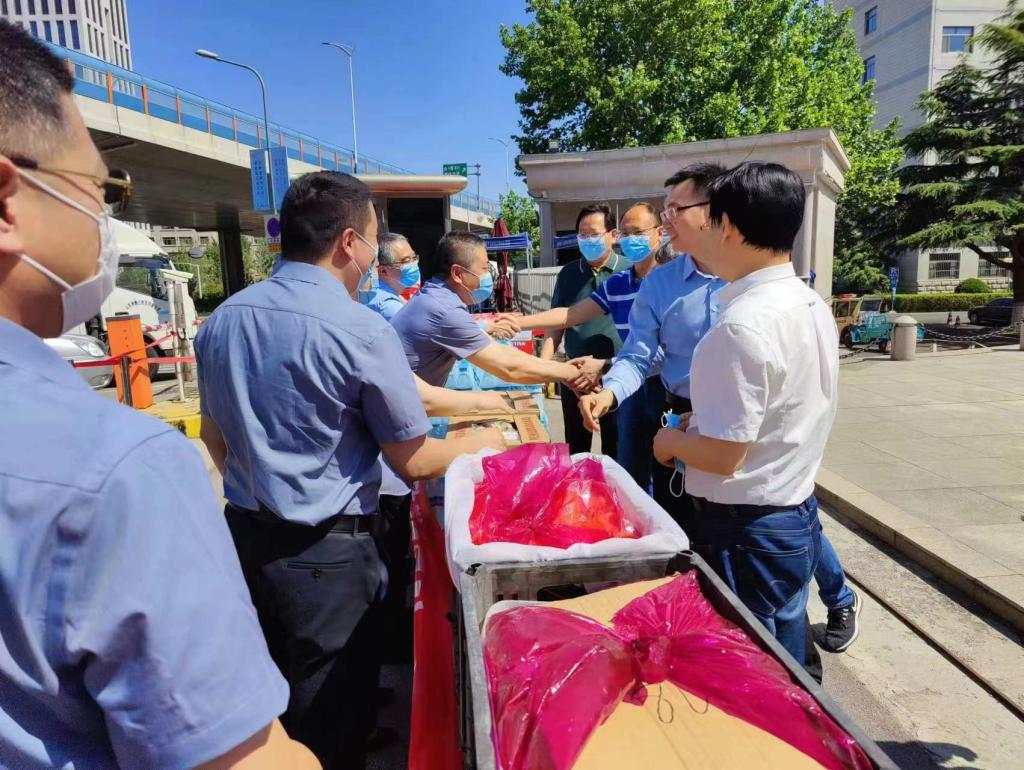 5月5日上午,校友企业山东纳博士集团来到山东财经大学燕山校区,给奋战在防疫一线的医务工作者送上方便面、矿泉水、 水果等慰问品,表达爱心企业对奋战在防控疫情一线工作人员的深情敬意。合作发展处、总务处负责人及部分医务人员代表参加了捐赠仪式。