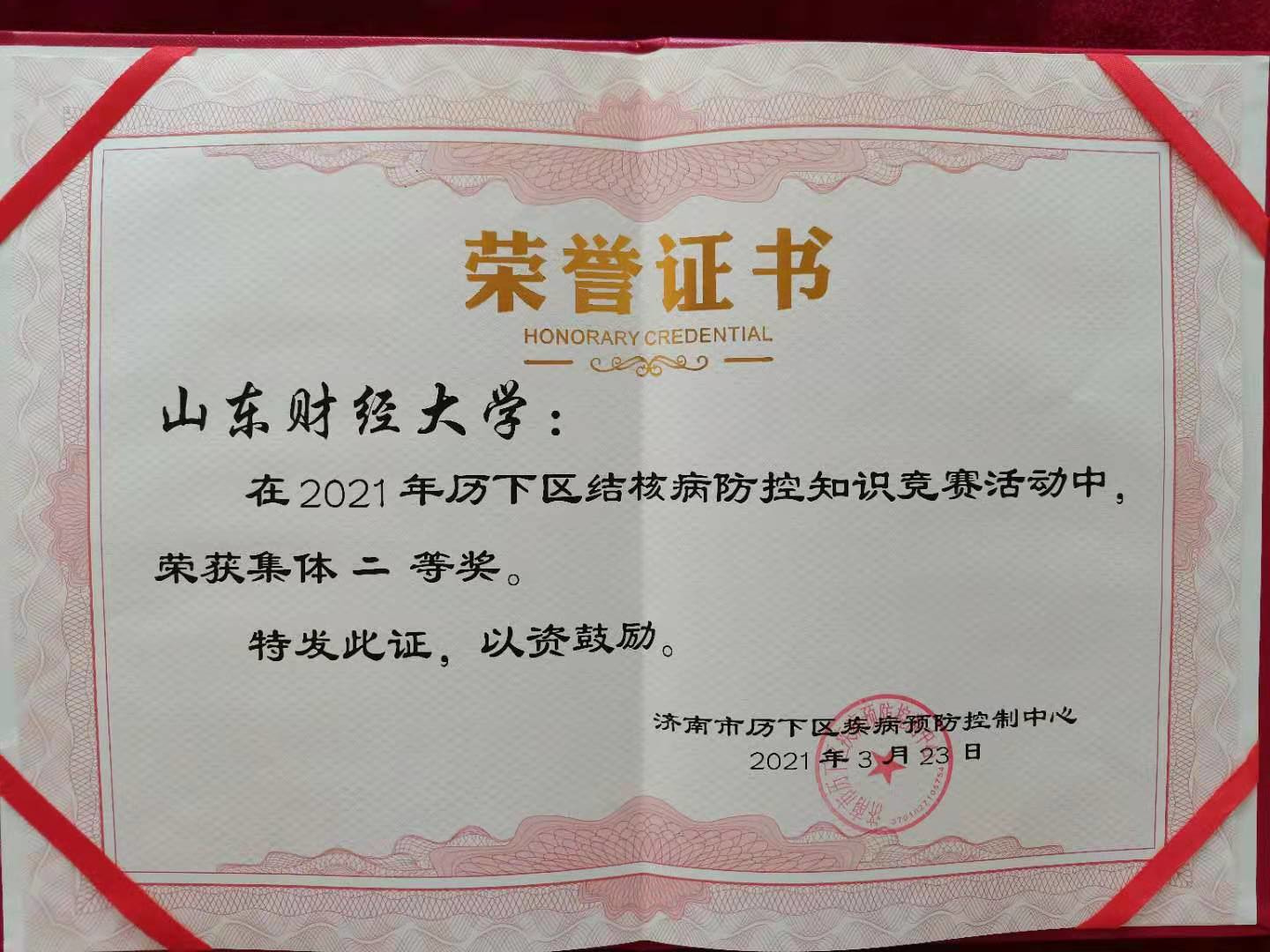 3月23日下午,在“终结结核流行 自由健康呼吸”历下区结核病防控知识竞赛中,我校参赛团队表现突出,获得团体第二名好成绩。